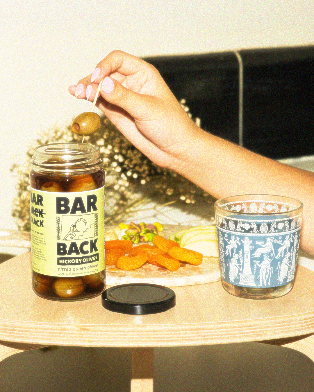 Like a silhouette of a person in the corner of the bar sipping a whisky highball. You want to be them, or be with them. Enjoy on the go or in the ambiance of your favorite watering-hole. Our olives are perfect for charcuterie boards, picnics, or as a late night snack.